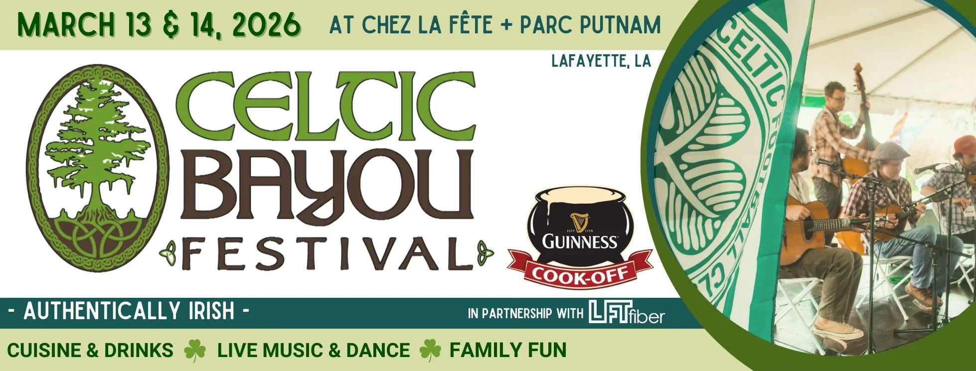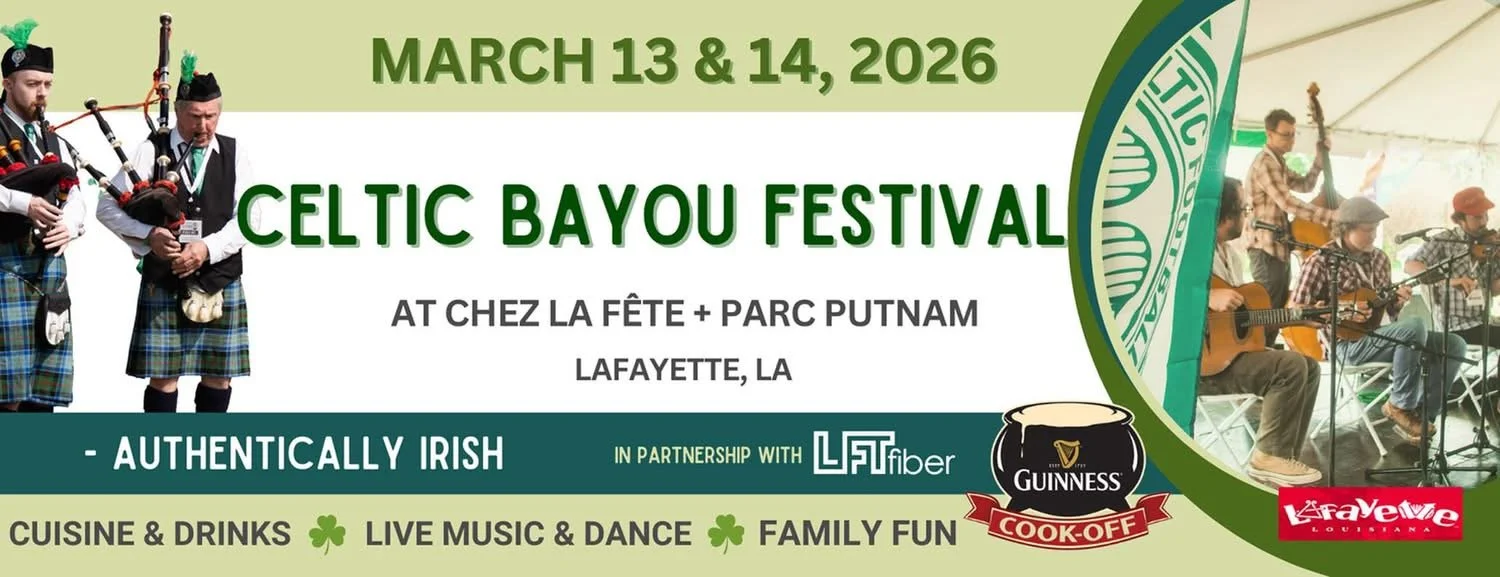 Celtic Bayou Festival is the BEST Celtic music festival in the South! Join us March 13-14, 2026 at Chez La Fête & Parc Putnam as we celebrate St. Patrick's Day in downtown Lafayette, LA. CBF's mission is to preserve, protect & promote Irish, Irish American and other Celtic cultures.